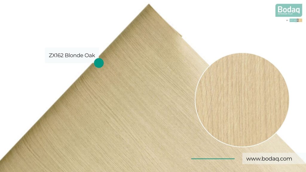 De ZX162 Blonde Eiken interieurfolie is een populaire premium eikenlook met een lichte, warme ‘blonde’ toon. Ideaal voor keukens, meubels en panelen wanneer je een luxe houtlook wilt die licht blijft en een zachte, moderne sfeer creëert.
