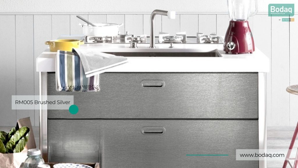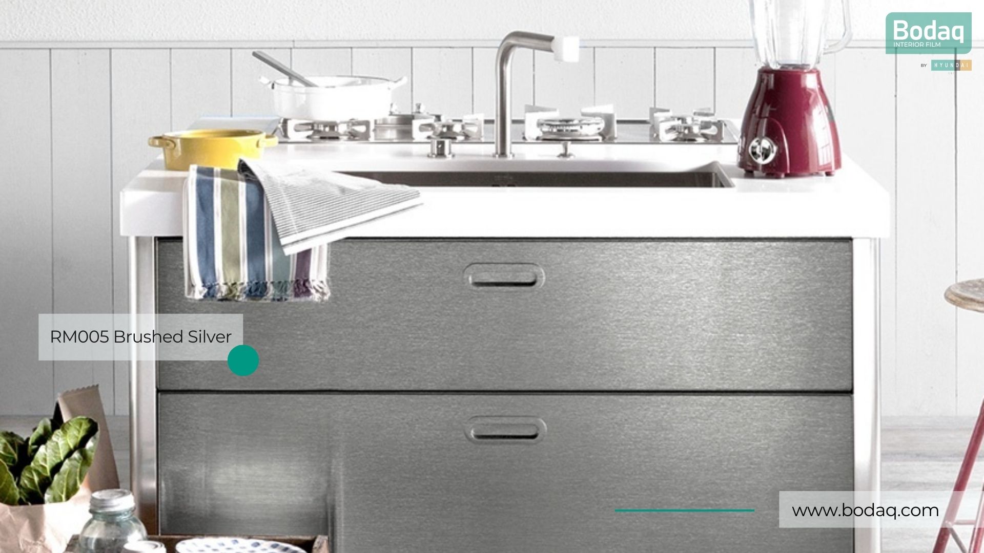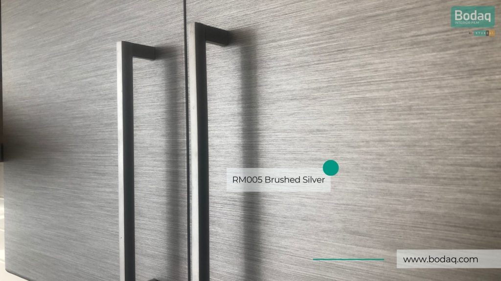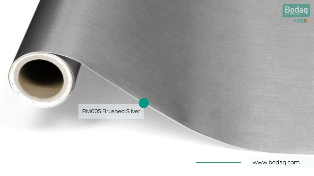 De RM005 Brushed Silver interieurfolie is een populaire keuze voor een strakke, moderne metaaluitstraling. De geborstelde textuur geeft diepte en een authentiek metaalgevoel, ideaal voor keukenfronten, meubels en wandpanelen.