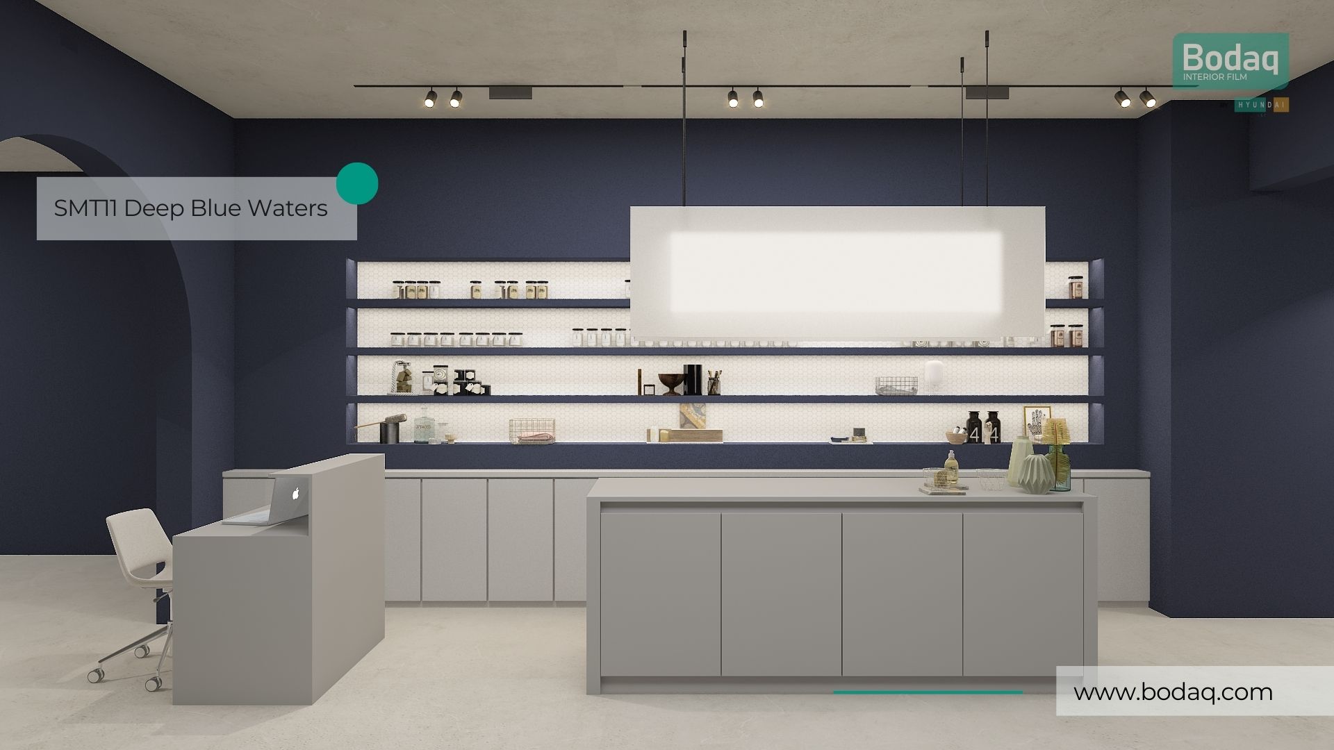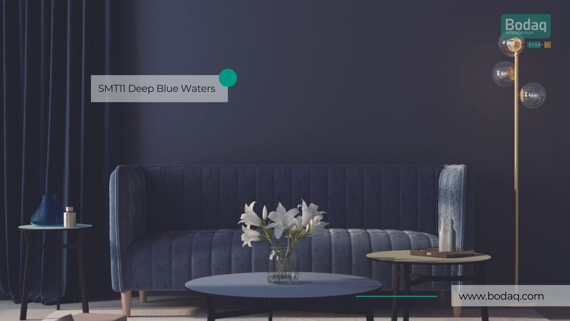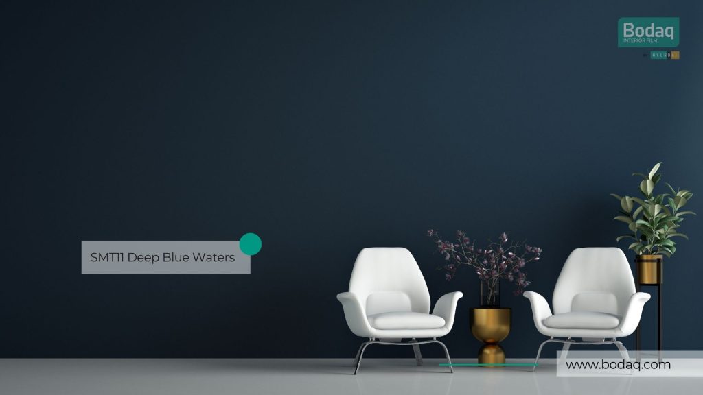 De SMT11 Deep Blue Waters interieurfolie heeft een rijke, diepe blauwtint met een luxe super matte afwerking. Ideaal voor statement accenten op meubels en wanden in moderne interieurs.