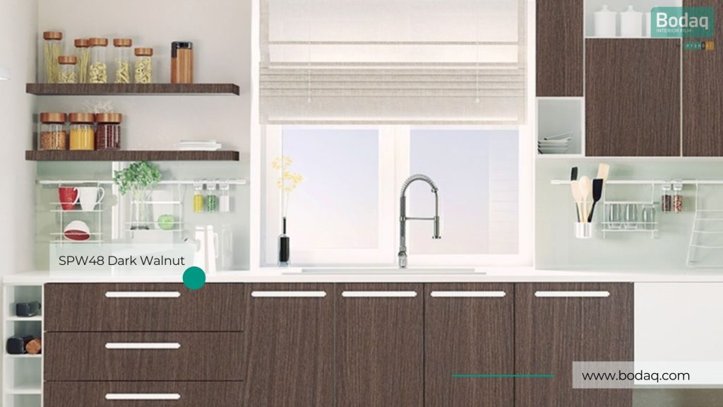 De SPW48 Donker Walnoot interieurfolie is een populaire keuze met een diepe walnoottint en een verfijnde houtstructuur. Perfect voor meubels, keukenfronten en panelen wanneer je een warme, luxe houtbasis wilt.