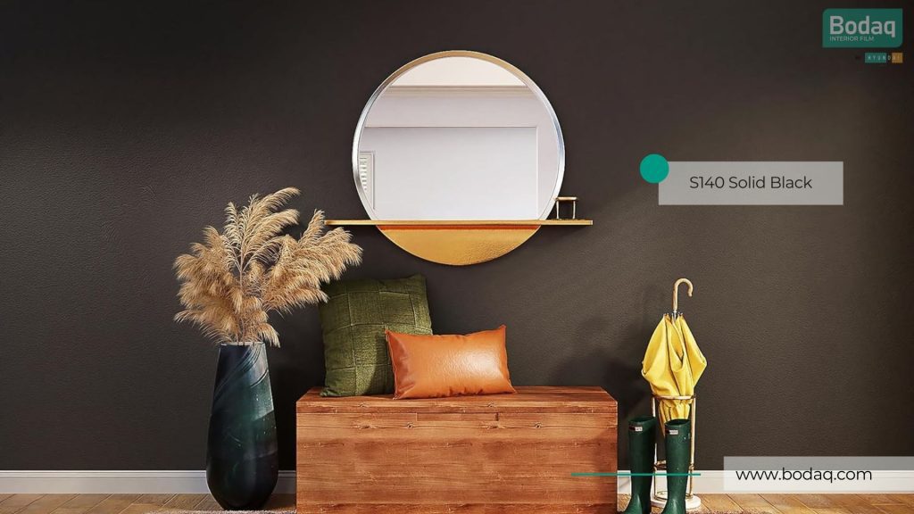 De S140 Effen Zwart interieurfolie heeft een diepe zwarte kleur met een matte afwerking en is een van de populairste effen kleuren. Perfect voor moderne en industriële interieurs, ideaal voor meubels, keukens en accentwanden.