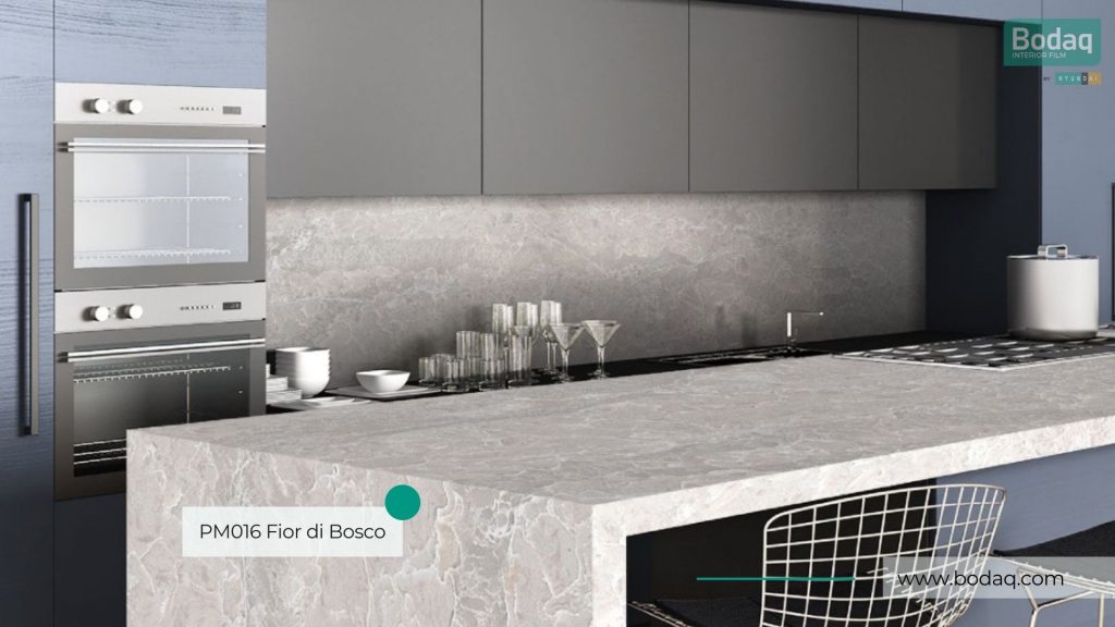 De PM016 Fior di Bosco interieurfolie is een populaire premium marmerlook met rijke grijstinten en een uitgesproken adering. Perfect voor luxe interieurs, keukenfronten en statement wanden waar je een high-end uitstraling wilt creëren.