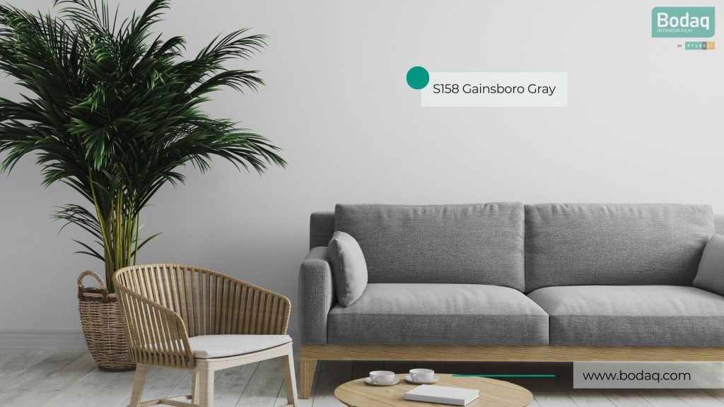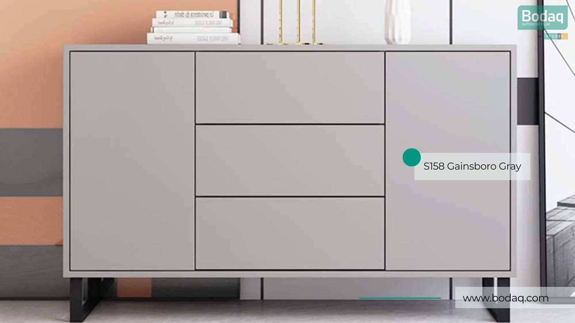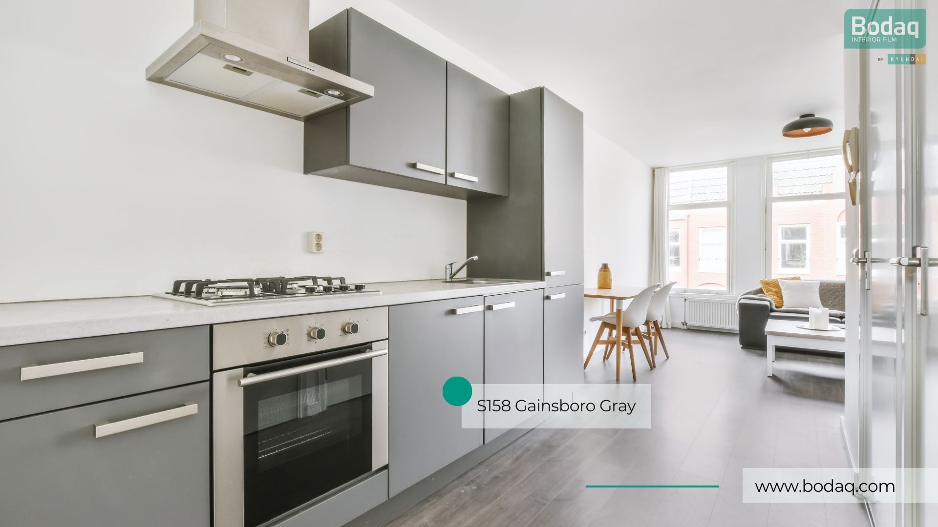 De S158 Gainsboro Grijs interieurfolie heeft een moderne, lichte grijstint met een strakke matte finish. Een populaire keuze voor tijdloze renovaties van keukenfronten, meubels en wanden.
