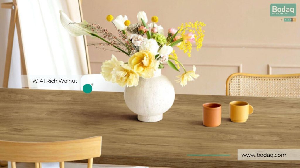 De W141 Rich Walnoot Medium Wood interieurfolie geeft een rijke walnootlook met een warme middelhouten toon en een realistische nerftekening. Ideaal voor meubels, keukenfronten en panelen wanneer je een luxe houtaccent wilt dat toch tijdloos blijft.