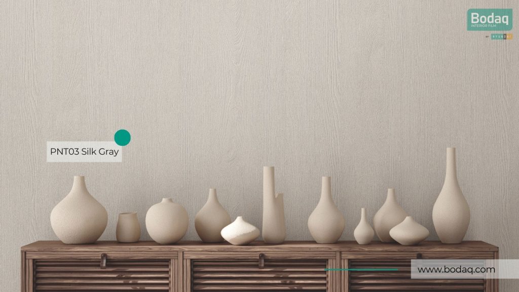 De PNT03 Silk Grijs interieurfolie heeft een elegante greige nuance met een geschilderde houtstructuur. Ideaal voor warme, moderne interieurs waar je een zachte kleurtoon en een hoogwaardige houtlook wilt combineren.