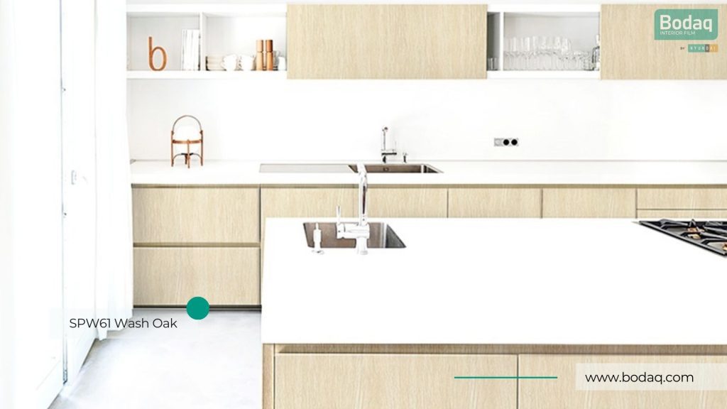 De SPW61 WEs Eiken interieurfolie heeft een lichte, gewassen eiken uitstraling met een zachte nerftekening. Ideaal voor keukens, meubels en panelen wanneer je een frisse, natuurlijke houtlook wilt met een moderne twist.