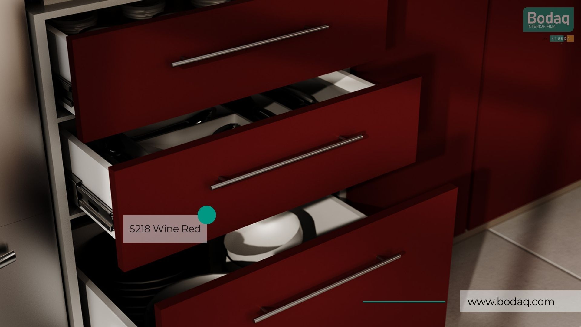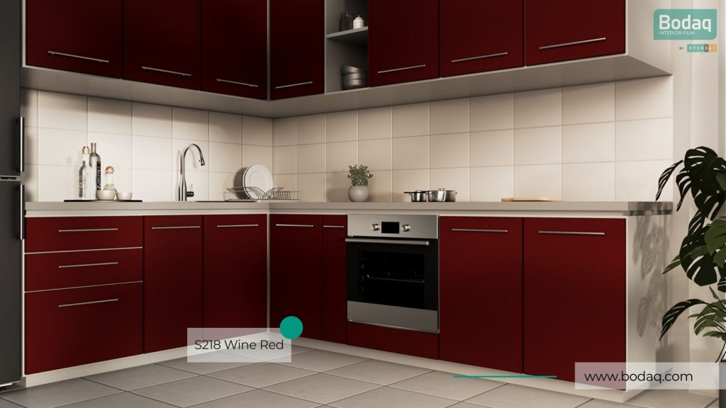 De S218 Wine Red interieurfolie heeft een rijke wijnrode tint met een egale matte afwerking. Perfect voor chique statement accenten op meubels, deuren en interieurpanelen.