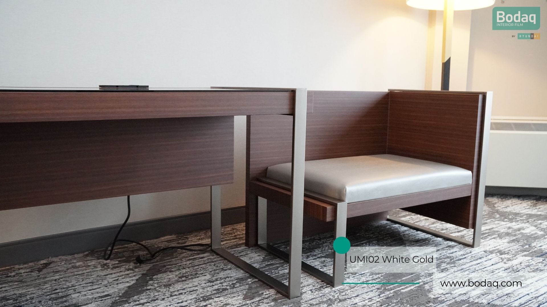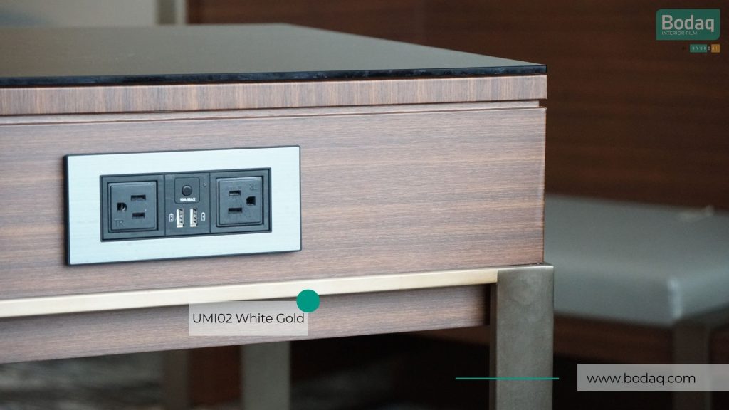 De UMI02 Wit Gold metaallic interieurfolie combineert een luxe goudtoon met een heldere, glanzende metallic uitstraling en holografische reflectie. Ideaal voor opvallende accenttoepassingen, retail en high-end interieurdetails.